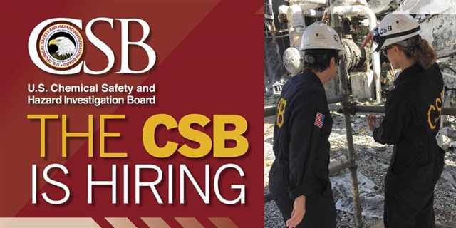The Chemical Incident Investigator position is located in the Office of Investigations. The incumbent serves as an expert in industrial chemical safety and nationwide incident investigation and analysis of major incidents involving the accidental release of hazardous materials and, developing and presenting reports with safety recommendations for adopting by the Board.